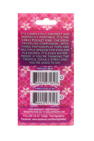 Dont let its size fool you. This little vibe packs a big punch! With multiple speeds and 3 Pop-and-Play tops to suit your mood, your pleasure is endless. Completely discreet and perfectly portable, its the ideal traveling companion. And with the included velvet pouch....its your little secret. Waterproof and non-phthalate.