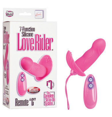 Remote control vibrating G with 49.25-inch range. 7-functions of intense vibration pulsation and escalation. Soft silicone contoured G sleeve with removable stimulator. Easy touch controller with LED.