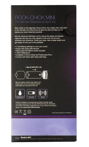 Baby sister to the legendary Rock-Chick this cheeky little wild child is the ultimate mini clitoral and g-spot toy that will take you to places you never dreamed possible. Mini by name but definitely not by nature this sleek slender class act will rock you into orgasmic orbit and can be worn wherever and whenever. Close your eyes take a deep breath and get ready to rock your inner goddess.