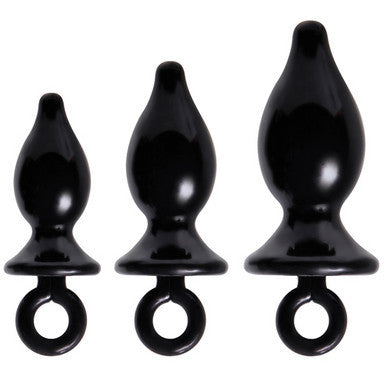 This sexy set of 3 soft and pliable anal plugs allows you to train your backdoor to enjoy the exquisite pleasure of anal sex. Start with the small plug graduate to the medium plug and then ease further into your anal adventures with the large plug. Each plug features a tapered tip for easy entry and a stretchy ring for sensual thrusting and quick removal.