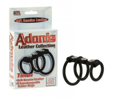 The Adonis Triton Harness is a 100% Hand Stitched, Soft, and Comfortable Genuine Leather adornments designed to enhance and impress. The Double ring leather harness comes with three interchangeable rubber rings and nickel'free metal snaps.
