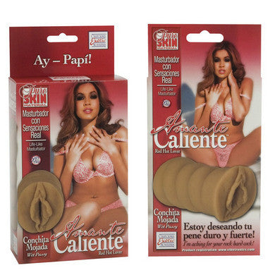 Caliente! Hot, life-like, soft, tight and stretchy Pure Skin masturbator. Bilingual packaging