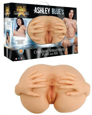 Molded directly from Adult Super Star Ashley Blue, this CyberSkin pussy and ass feel soft but with firm love tunnels. Molded with her hands on her ass; you can see the flesh between her fingers. Pussy lips, ass and fingernails are hand painted and there are cutouts on the back of the piece for better leverage or they will suction to a flat surface. This item is life-sized and a realistic-feeling nine pounds with a tight pussy opening and a separate ass opening gives way to the single ribbed love tunnel.