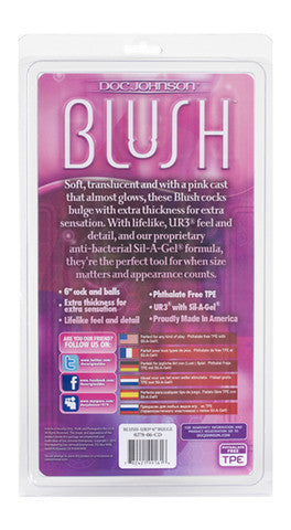 Soft, translucent and with a pink cast that almost glows, these Blush cocks bulge with extra thickness for extra sensation. With life-like UR3 feel and detail they're the perfect tool for when size matters and anppearance counts. Made from non-phthalate body safe material, which inlcudes Doc's anti-bacterial Sil-A-Gel formula and is proudly made in America.