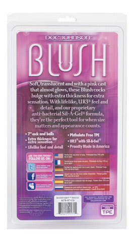Soft, translucent and with a pink cast that almost glows, these Blush cocks bulge with extra thickness for extra sensation. With life-like UR3 feel and detail they're the perfect tool for when size matters and anppearance counts. Made from non-phthalate body safe material, which inlcudes Doc's anti-bacterial Sil-A-Gel formula and is proudly made in America.