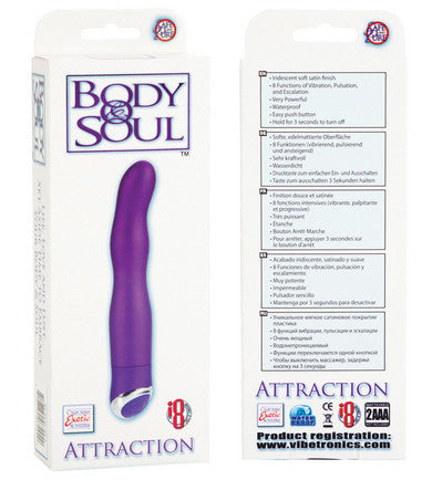 Seamless silky smooth massager. Pleasing shape for versatile use. Designer iridescent Satin Finish. 8 powerful functions of vibration pulsation and escalation Easy push button controller. Hold button for 3 seconds to turn off.