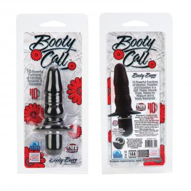 Booty call a premium collection of vibrating silicone products designed for intimate play. Soft, pliable vibrating silicone probe. Ribbed for personalized pleasure. 10 powerful functions of vibration, pulsation, and escalation. Push button control with LED light.