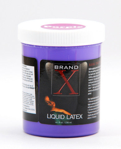 Brand X Liquid Latex is a fun and creative product that is only limited by your imagination. Its a natural biodegradable and non-toxic result of tree sap and does not contain petroleum or bonding agents commonly found in paint. This allows it to peel off with ease and will not permanently adhere to non-porous surfaces and still allows the skin to breathe underneath. Liquid latex can be applied to Spandex Lycra and Denim for reusable latex clothing and is great for creating costumes clothing masks or dressing up for your favorite sporting event and should last several hours when applied generously.