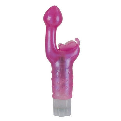 The ultimate in total feminine arousal! Sensually designed, waterproof, power packed 3-speed arouser with an unbelievable fluttering butterfly, and a delicately shaped G-spot stimulator. EZ touch push button control. 2 AAA batteries are required.