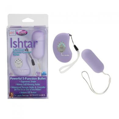 Ishtar is an adult remote vibrating toy and is not intended to affect the structure of the body or for any therapeutic use. Ergonimically shaped powerful velvety soft remote controlled bullet. 5 powerful functions of vibration, pulsation, and escalation.