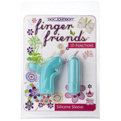 Finger Friend vibrator features 10 functions, and is completely waterproof. Soft silicone sleeve easily fits over the vibrator added stimulation and comfort. Featuring a ring design which makes them easy to use with one hand and an ergonomic push button control. The Blossom Finger has a has a swirly rippled shaft.