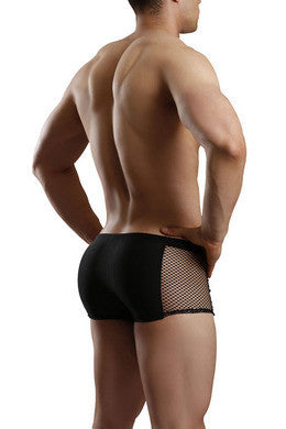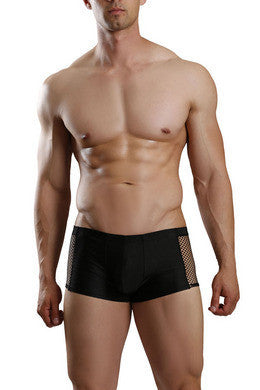 This sexy mens trunk is made with shiny tricot lycra and fishnet. This trunk features seductive fishnet style sides an extreme low rise cut and seductive proportioned pouch with uplifting snug fit for maximum support. This hot little. Number is adorned with an elastic waist band and folded hemline.