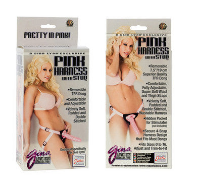 Plushy soft, padded, double-stitched, secure, 4-snap universal harness with non-chafing, fully adjustable waist and thigh straps and a hidden pocket for an optional stimulator (not included). Includes a superior quality 7.5 inch dong.