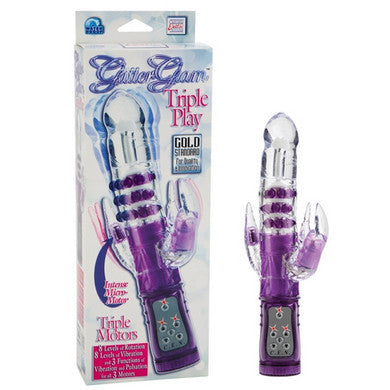 Triple motors for triple orgasmic bliss. Intensely powerful triple motors with over 200 patterns of vibration, pulsation, and escalation. Intensely powerful vibrating pulsating bunny. Flexible graduated vibrating tail with a micro-powered exciter. 3 rows of non-jamming rotating beads. 8 levels of rotation. 8 levels of powerful vibration. 3 functions of vibration, pulsation, and escalation for all 3 motors.
