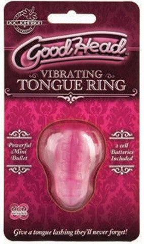 Show em what goo head really means... Your partner will never look at you the same way after you use this sexy toy. Just slip on the one-size-fits-all disposable vibrating tongue ring and watch as their ecstasy soars to new heights while lick nibble and suck. The pink jelly material flexes with the movement of your tongue and it is made of body safe non-phthalate TPE material. Two cell batteries included. Go ahead - give a tongue lashing they will never forget.