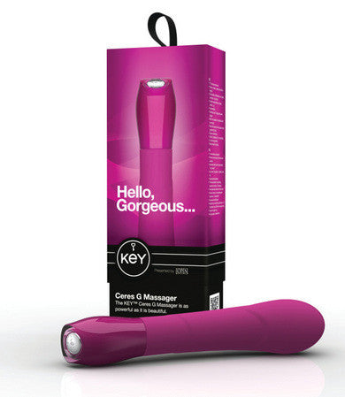 Keys Cere G-spot Massager is softly dressed in silicone as smooth as a petals touch. Its curves are sure to captivate you with 7 powerful vibrating patterns. Sophisticated glass-like effect designer controller. Hold for 3 seconds to turn off anytime. Stainless alloy easy push button.