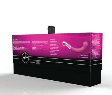 Keys signature wand is weighted and curved for stimulation. A durable glass body dipped in body safe silicone and branded with the stainless alloy Key emblem of quality this wand is just what you need for unparalleled pleasure.