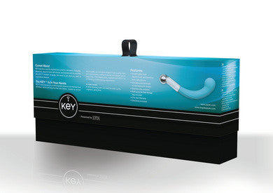 Keys signature wand is weighted and curved for stimulation. A durable glass body dipped in body safe silicone and branded with the stainless alloy Key emblem of quality this wand is just what you need for unparalleled pleasure.