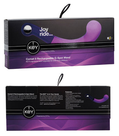 Keys signature Comet wand has been upgraded for even more mind-blowing pleasure. The Comet ll features the same pleasure perfect curves enhanced with a powerful motor featuring 7 sensational vibrating patterns for you to explore. Sophisticated glass effect designer controller. USB rechargeable with magnetic contacts.
