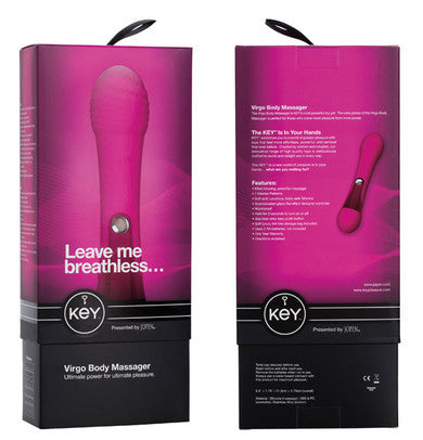 The Virgo massager is Key most powerful toy yet. The extra power of the Virgo Body massager is perfect for those who crave more pleasure from more power. Mind -blowing powerful massager. 7 intense patterns. Sophisticated glass-like effect designer controller.