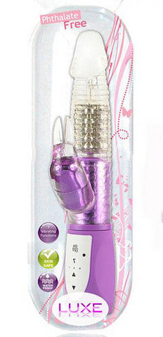 The Luxe Rabbit was created to help achieve total bliss. The Luxe Rabbit vibrator has three different areas of stimulation: shaft with a phallic shape pleasure rotating beads plus rabbit clitoral stimulator. Waterproof for play in and out of the water. Features multi-speeds vibrating clit stimulator. Multiple speeds rotating pleasure pearls. Soft and sensual feel. Gyrating shaft. Independently controlled functions. Total length 10.5 inches approximate.