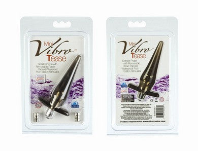 Please your lover with the Mini Vibro Tease. This slender probe has a removable power pack, and a push button control.