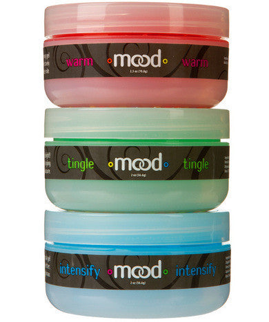Finally, an arousal gel for every mood! Our new MOOD Arousal Gels come in a 3-pack of 2 oz. containers and are absolutely perfect diverse and amazing foreplay sessions. 'Warm' brings the heat, 'Tingle' creates a stimulating buzz, and 'Intensify' enhances every sensation. Each container is even packed with its own tasty flavor; includes 'Warm' Mint, 'Tingle' Strawberry, and 'Intensify' Spicy Cinnamon. All flavors are delectably lickable. Proudly made in America.