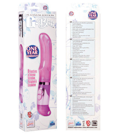Incredibly powerful flexible G massager carries full 1 year warranty. 8 functions of intense vibration pulsation and escalation. Easy push button control with instant off. State of the art memory chip resumes last function used.