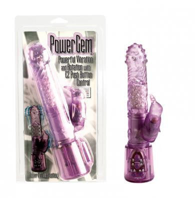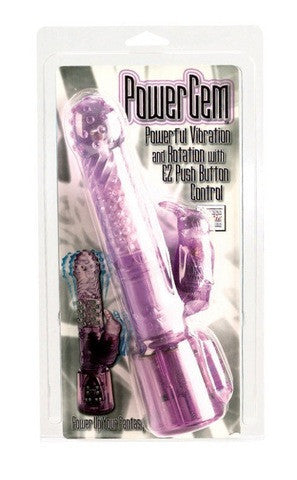 This Power Gem Stimulator Rabbit Vibrator has two powerful vibration speeds and rotating pearls inside the main shaft that rotate while the penis head twirls around and the clitoral stimulator tickles and teases the clitoris. Easy push button controls let you adjust the functions independently.