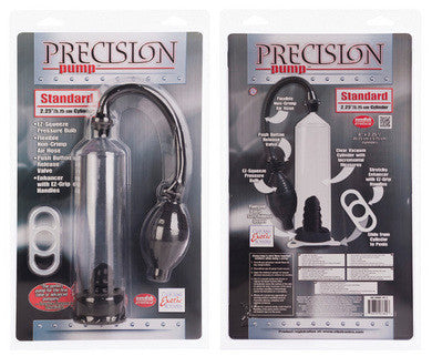 The perfect pump for the first time or advanced pumpers. Clear vacuum cylinder with universal incremental measurements. EZ squeeze pressure bulb with push button releases valve. Flexible non-crimping air hose. Flanged base with removable soft ribbed donut. Stretchy enhancer with EZ grip handles.