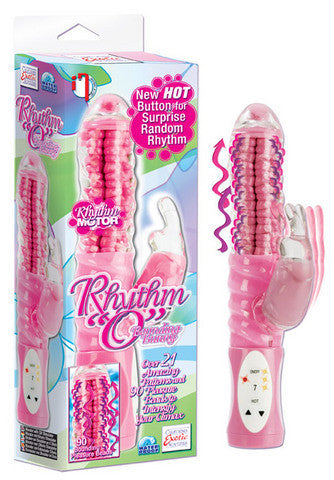 New patent pending Rhythm Motor with 90 incredible synchronized rotating pleasure beads. 7 functions of vibration, pulsation, and escalation New hot button for random function selection. 3 speeds of shaft rotation. Over 21 different patterns of shaft rotation and clitoral functions. EZ push button controls, EZ load battery pack, LED lights.