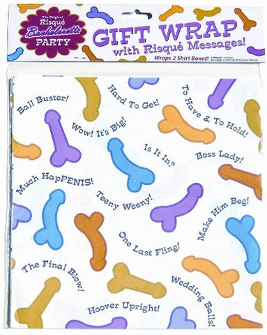 Cuddly risqu penises and risqu messages adorn this colorful gift wrap. IT'S A RISQU PARTY IN EVERY BOX! They are a perfect gift for that adult only naughty party. 2 inch sheets.