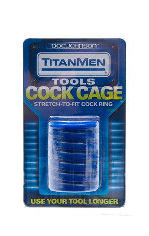 Fulfilling the same basic function as a cock ring, but broader and more robust, TitanMens reliable Cock Cage lets you stay harder longer while adding girth. The sleeve has ribbed texture for enhanced stimulation for your partner, plus a cozy tightness for your dick. Made in USA of anti-bacterial PVC with Sil-A-Gel, and 100 percent phthalate free, it stretches to fit most penises. We advise you not to wear it for more than about 20 minutes at a time.