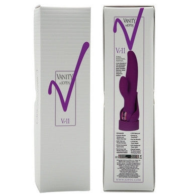 Indulge yourself with the Vanity Vr10 rabbit vibrator. The rotating shaft and dual motors provide intense internal and clitoral stimulation. The base is easy to hold and the buttons are simple to use. It is ergonomically designed for the natural contours of a woman. With it's rechargeable lithium ion battery, the Vr11 will give you up to four hours of intense pleasure