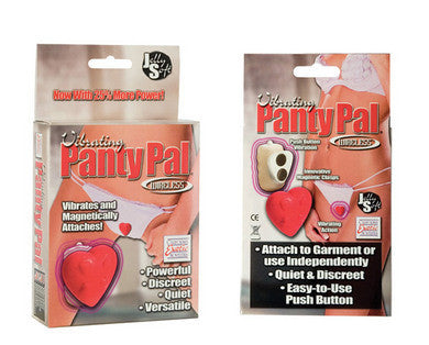 This Vibrating Heart Panty Pal is an Innovative, discreet, wireless ticklers that attach with dual magnets to most garments anywhere vibrations are desired. The pretty heart clips on via strong magnets; these hold tight to the bullet so it stays in place, wherever you choose to put it.