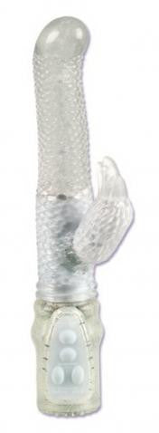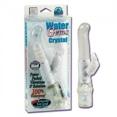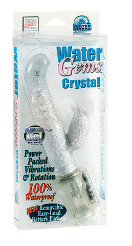 The Water Gems Crystal Stimulator is a sensually glittered Jelly soft head rotating shaft with reverse mode flickering clitoral stimulator and easy-touch push button controls.