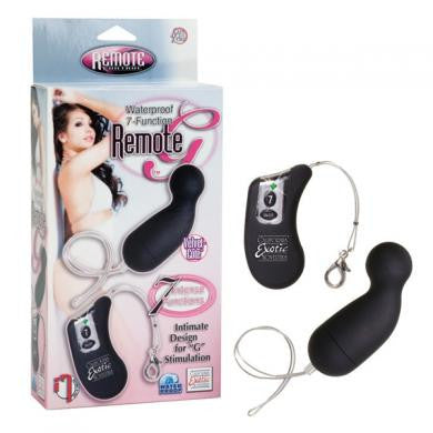Ergonomically shaped, intimately designed remote control G stimulator with sturdy retrieval cord. 7 intense functions of vibration, pulsation, and escalation. Push button remote with independent function controls, one touch on/off button LED indicator light and convenient carry strap.