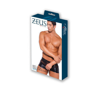 Wet Look Peek-a-boo Shorts - Black - One Size